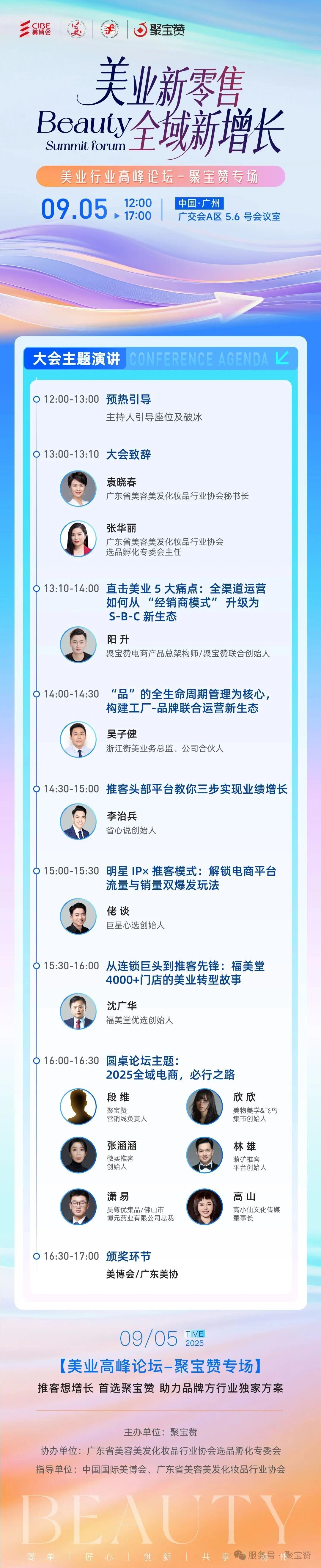如果您也是美業(yè)/大健康行業(yè),無論你是品牌方、OEM工廠、渠道商……這里都有相對(duì)應(yīng)的行業(yè)前沿趨勢(shì)、實(shí)戰(zhàn)增長(zhǎng)方法與優(yōu)秀案例拆解,誠(chéng)邀您來美博會(huì)行業(yè)高峰論壇-聚寶贊專場(chǎng),就在廣交會(huì)A區(qū)1樓5、6號(hào)會(huì)議中心,期待與您共赴這場(chǎng)美業(yè)增長(zhǎng)破局之約!